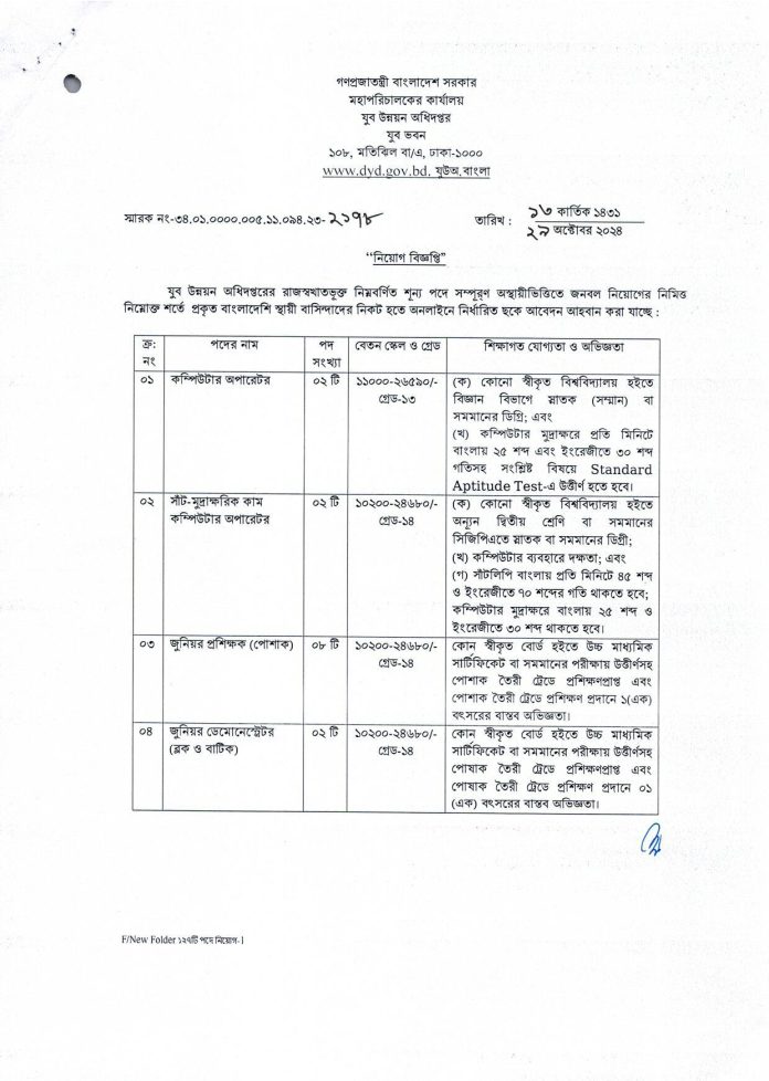 👉 প্রতিষ্ঠানঃ যুব উন্নয়ন অধিদপ্তর (DYD)